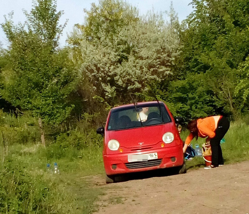 В Шахтах женщина мыла машина рядом с водохранилищем ХБК. Проезжавшие мимо шахтинцы отметили, что это не есть хорошо в плане экологии.
