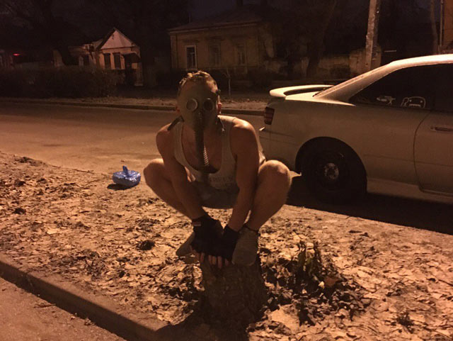 Полуголый парень в противогазе двигался на четвереньках в Новочеркасске
