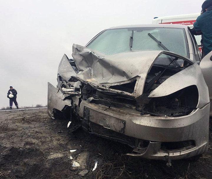 Столкнулись Skoda и Mitsubishi на трассе М-4 между Шахтами и Ростовом [Фото]