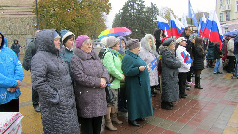 4 ноября 2017 г.Фото © Администрация г. ШахтыВ Шахтах днем, 4 ноября, отметили День народного единства. Городское мероприятие прошло на площади перед драмтеатром г. Шахты.