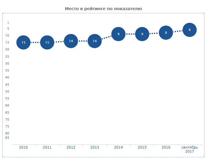 Примечательно, что Ростовская область с каждым годом «улучшает» свое место в рейтинге. Так, в 2010-м — 15 место в рейтинге, в 2011-м — 15, в 2012-м — 14, в 2013-м — 14, в 2014-м — 9, в 2015-м — 9, в 2016-м — 8 и в 2016-м — 6 место.
