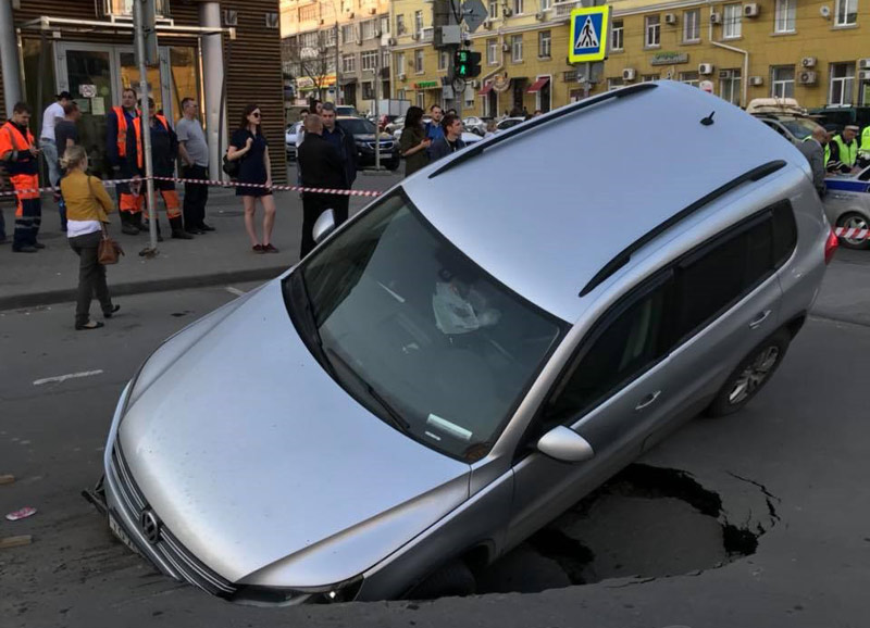 «Тигуан» провалился на дороге в центре Ростова [Фото + видео]