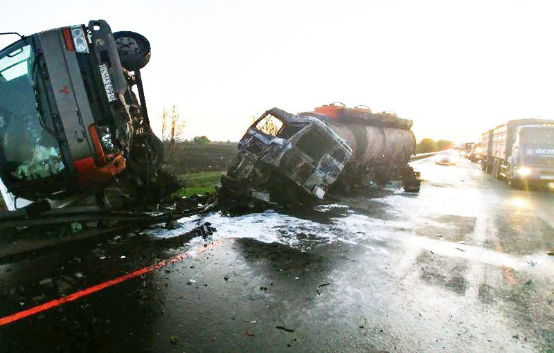 49-летний водитель бензовоза МАЗ, по предварительным данным, не справился с управлением, вылетел на обочину и протаранил стоявший грузовик Mitsubishi.