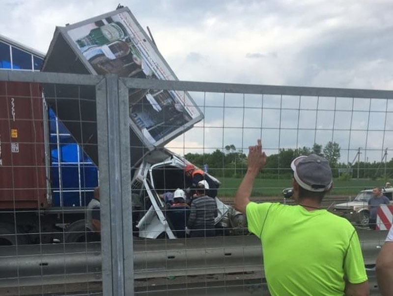 Водитель «Газели», перевозивший кеги с пивом, по предварительным данным не справился с управлением и врезался в КрАЗ, остановившийся в правой полосе из-за поломки. Удар был такой силы, что кабину «Газели» расплющило, а фургон сорвало.