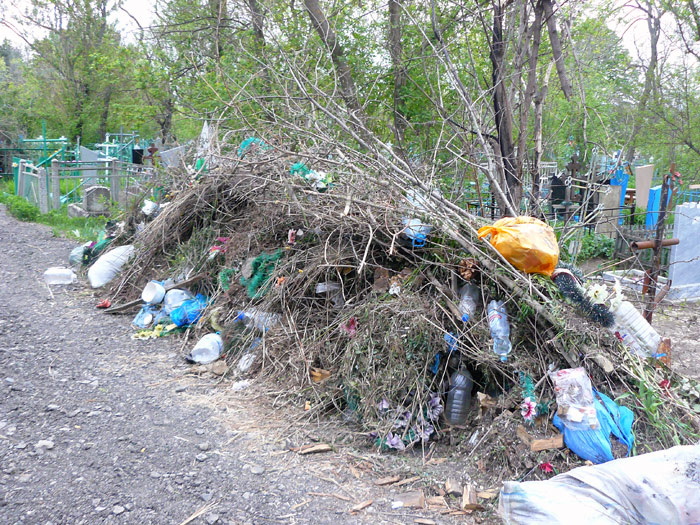 Жители города Шахты решили, что раз власти пообещали на этот раз решить проблему уборки мусора на кладбищах перед Пасхой, то так и произойдет. Ничего подобного. Возможно, город Шахты заговорен и на нем лежит проклятие.