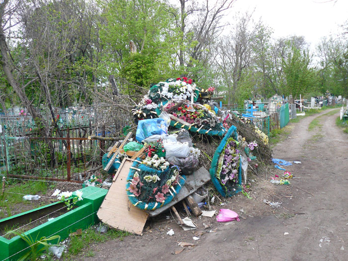 Бросается в глаза, что помимо убранной травы в мусоре стало очень много деревянных крестов и больших венков. Или смертность увеличивается, или массово стали вместо крестов устанавливать памятники. Впрочем, возможно, вещи это связанные.
