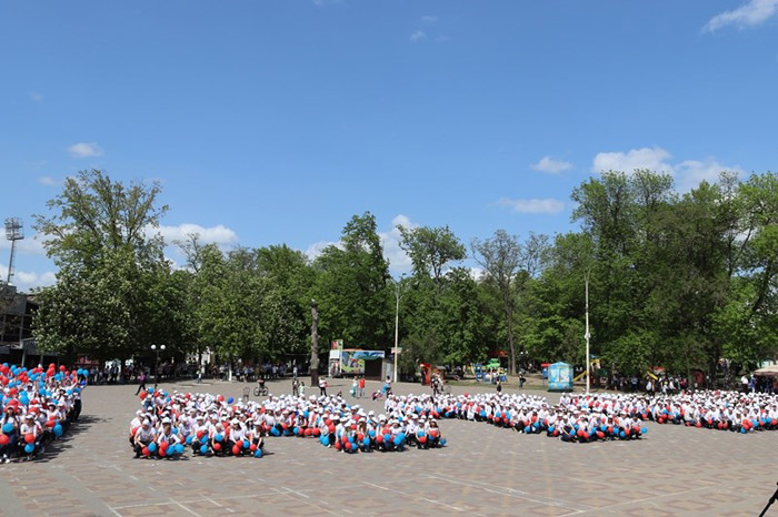 В мероприятии приняли участие около полутора тысяч школьников, студентов и активистов. После построений молодежь под военные песни показала небольшой танцевальный номер.