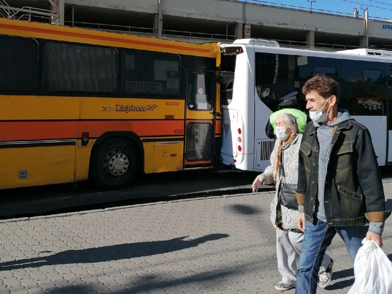 Три автобуса столкнулись у Главного автовокзала в Ростове