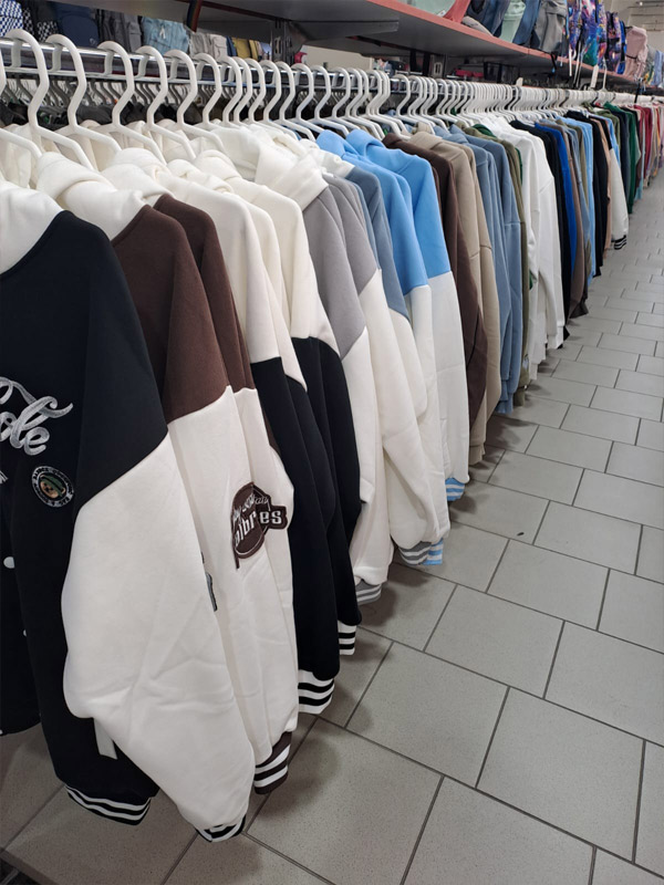 В двух торговых залах «Биг шоп» площадью 3000 кв. м можно найти одежду, обувь и аксессуары для взрослых и детей. Здесь есть спортивные и повседневные вещи, джинсы, толстовки, осенние и зимние куртки и прочее.