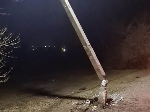 В результате столб не выдержал удара, надломился у основания и накренился, но не упал.