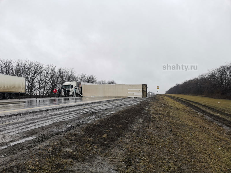 Перевернулась фура на трассе М-4 «Дон» рядом с городом Шахты