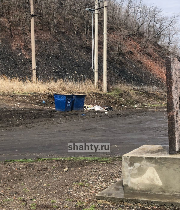 А рядом, в десятке метров, поставили мусорные контейнеры. «Установили памятник на мусорке. Пусть люди посмотрят, как наша администрация чтит героев», — отметил шахтинец.