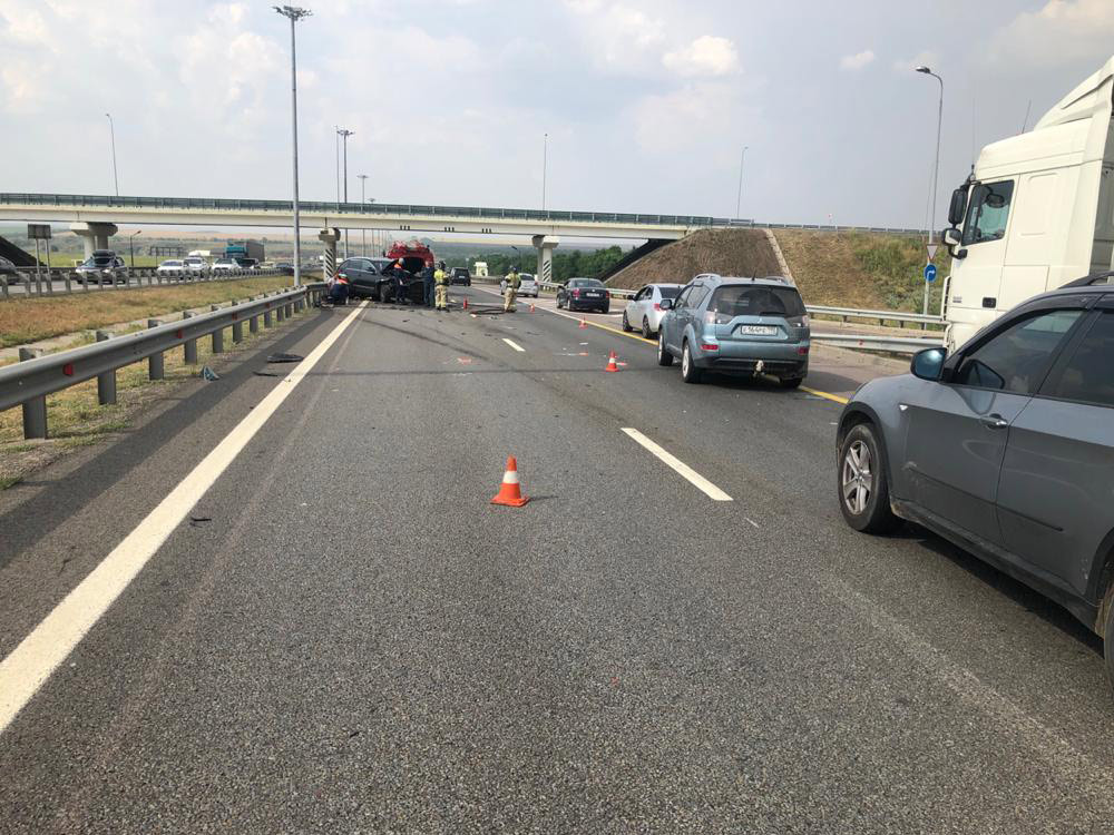 61-летний водитель за рулем кроссовера Audi Q7, по предварительным данным, перестроился с левой на правую полосу и начал резко снижать скорость. В этот момент сзади кроссовер протаранил КАМАЗ, водитель грузовика не успел затормозить.