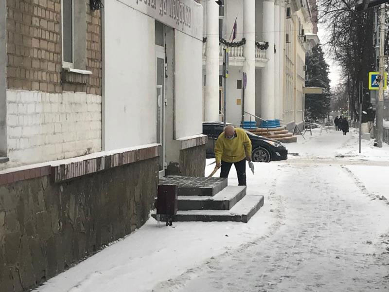 Очистку тротуаров и остановок общественного транспорта осуществляет 39 человек, включая работников технического звена, закрепленных на территории поселков города.