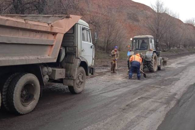 30 марта 2022 г.Фото © Администрация г. ШахтыПроводится ямочный ремонт дорог в городе Шахты