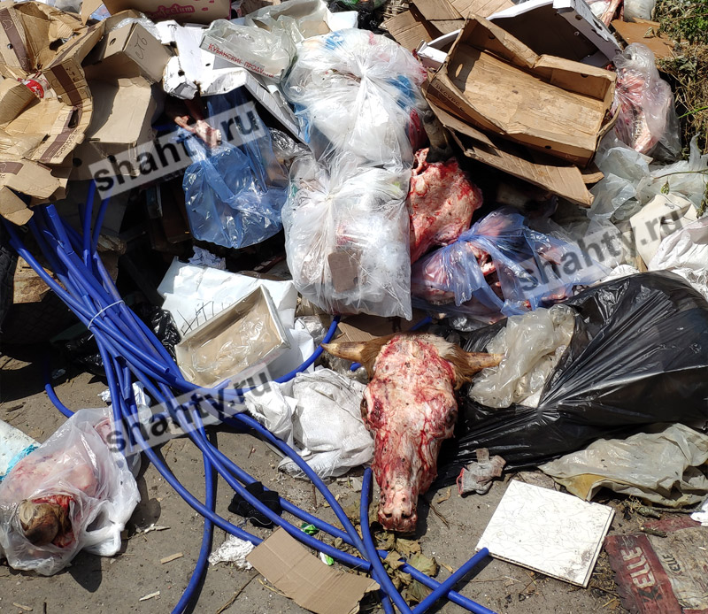 Источником подобных отходов в Шахтах является производство по переработке и продаже мяса. Таких в окрестностях находится не менее трех. Хочется надеяться, что полиция г. Шахты выяснит, кто именно так наплевательски относится к санитарным нормам и систематически грубо их нарушает.
