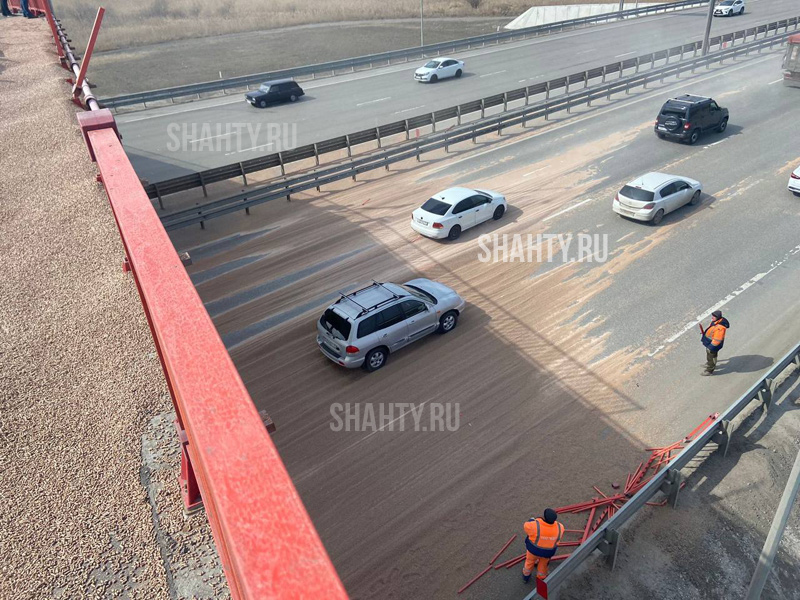 Опрокинулся тонар: наполнитель для кошачьих туалетов высыпался на трассу под Ростовом