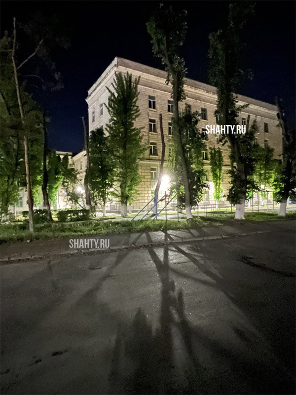 Произошло невероятное в Шахтах. Восстановили и отмыли все светильники в проезде перед ШАДИ, установили прожекторы на стенах вокруг здания.